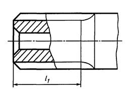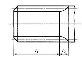 2.2. На изображениях зубчатых валов, полученных проецированием на плоскость, параллельную оси, указывают длину зубьев полного профиля l1 до сбега (см. черт. 1).