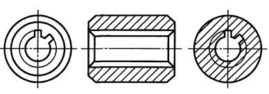 На проекции вала и отверстия на плоскость, перпендикулярную его оси, а также в поперечных разрезах и сечениях окружности впадин показывают сплошными тонкими линиями (черт. 5, 6).