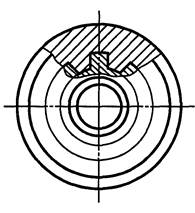 1.8. Если секущая плоскость проходит через ось зубчатого соединения, то при его изображении на разрезе показывают только ту часть поверхности выступов отверстия, которая не закрыта валом (черт. 7).