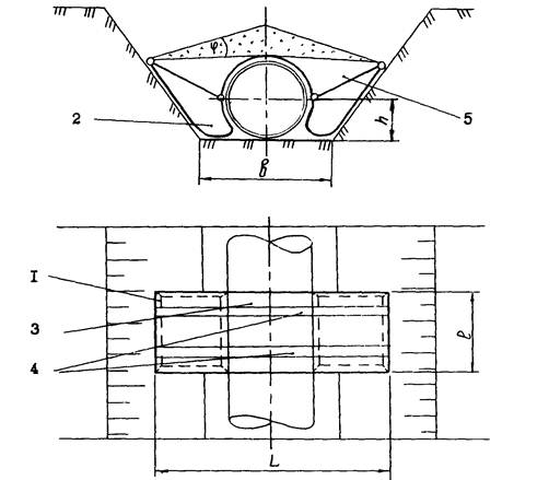 2.1. В зависимости от конкретных условий участка трассы трубопровода, характеристик грунтов, уровня грунтовых вод и схемы прокладки трубопровода применяются следующие конструкции и способы балластировки и закрепления трубопроводов: