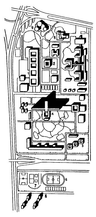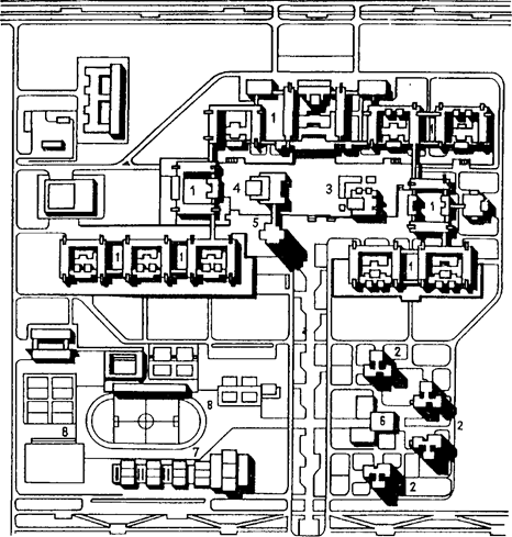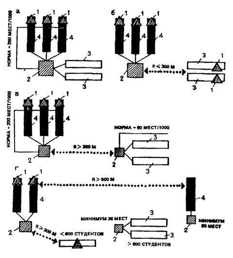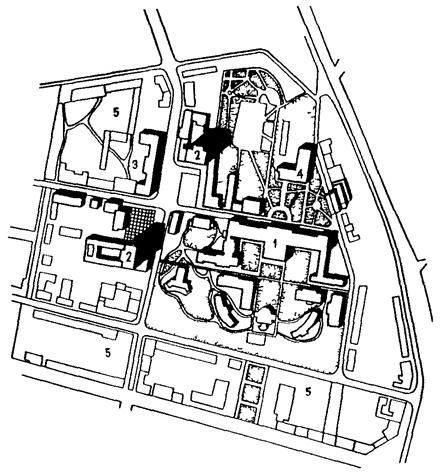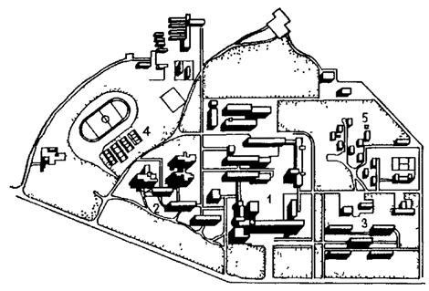 комплексность размещения и возведения учебных, научных, спортивных, жилых, культурно-зрелищных и обслуживающих зданий и сооружений вузов;