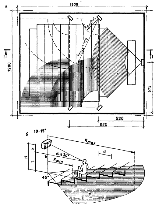 лаборатории и аудитории (на 90 мест и менее) с плоским полом для изучения спецпредметов (гражданская оборона, военная подготовка, техника безопасности и т.д.);