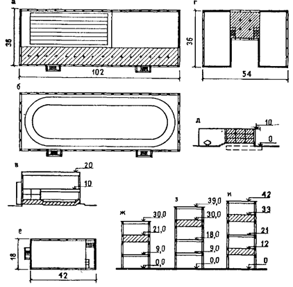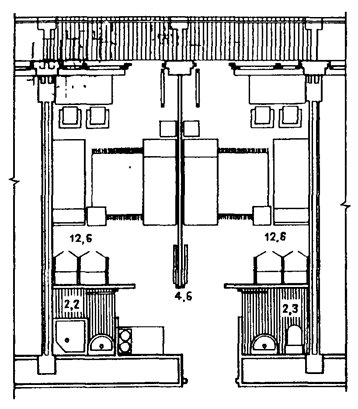 Для укрупненных расчетов общей площади в зависимости от вместимости и состава инженерного оборудования, при двух ярусных нарах, рекомендуется принимать площадь: для убежищ - от 0,74 до 1,12 м2 на 1 укрываемого; для противорадиационных укрытий - от 0,55 до 0,65 м2 на 1 укрываемого.