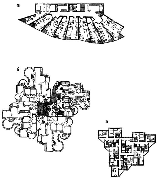 Рис. 7. Односекционные жилые дома с различной формой плана (зарубежный опыт):