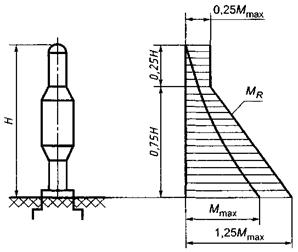 В качестве первого приближения расчетный изгибающий момент MR в сечении на высоте x0 с учетом влияния высших форм колебаний следует выбирать в зависимости от Мmax по эпюре рисунка 10.