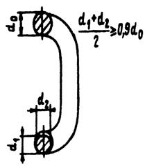 d0 - первоначальный диаметр, мм; d1, d2 - фактические диаметры сечения звена, измеренные во взаимно перпендикулярных направлениях, мм
