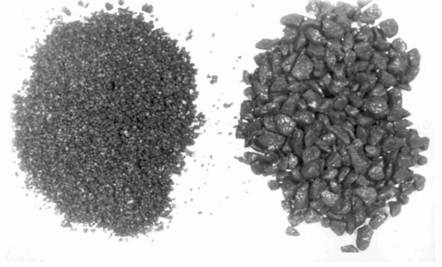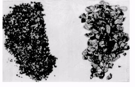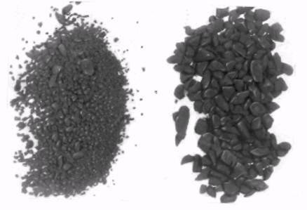Слева - смеси битума с песком; справа - смеси битума с мрамором.