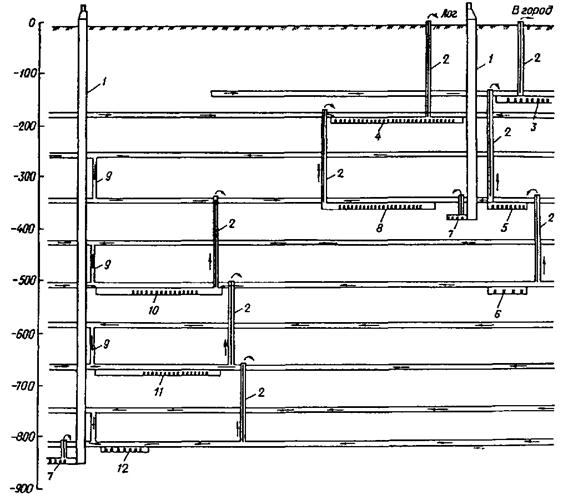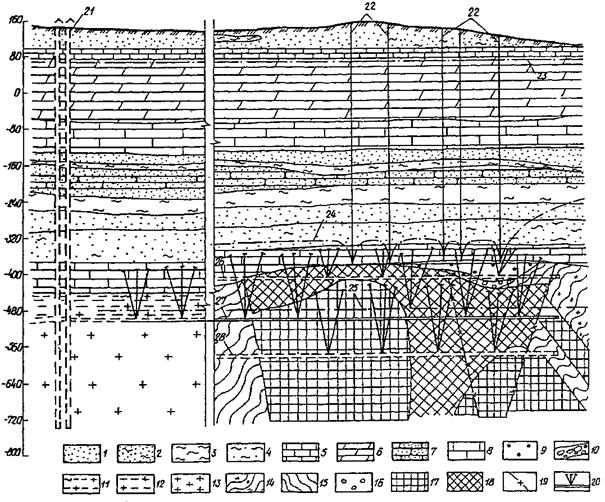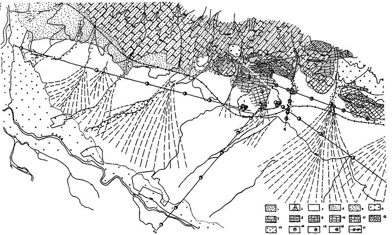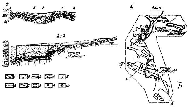 геологическая структура района, особенности геологического разреза, условия и глубина залегания полезного ископаемого, простирание и падение слоев горных пород;