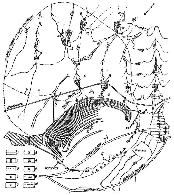 состав коренных и аллювиальных пород, слагающих дно и берега водотоков и водоемов, их мощность, фильтрационные свойства, наличие водоупорных пород, отделяющих водотоки от рудной зоны;
