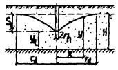 y1 - напор (ордината депрессионной поверхности) на линии водопонизительной системы, м;