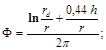 rhe - расчетный радиус совершенной скважины, эквивалентной по дебиту действительной несовершенной скважине, м;
