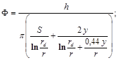rh - радиус скважины (дрены, половина ширины дрены), м;