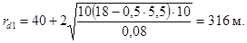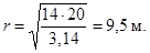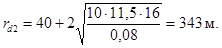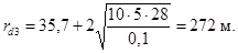 rs - приведенный радиус контурной противофильтрационной завесы по ее внутренней грани, м;