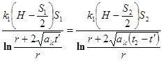 a - обобщенный знак, обозначающий при пользовании формулами, в которые он входит: при напорной фильтрации apc - пьезопроводность, м2/сут; при безнапорной фильтрации alc - уровнепроводность, м2/сут;