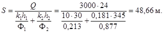 Sl - понижение уровня подземных вод на линии (контуре) водопонизительной системы, м;