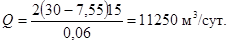 lh - расстояние от границы водоносного слоя до скважины, м;
