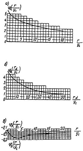 φ(u,v), φ1(u), φ2(v), φ3(u) - вспомогательные функции для расчета контурного дренажа.
