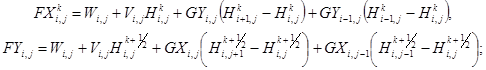 xmhix - расстояние от зеркального отображения и скважины относительно оси x до расчетной точки, м;