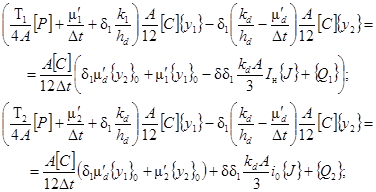 θ(u,v), θ1(u,v) - вспомогательные функции для определения понижения между двумя границами водоносного слоя;