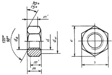 Конструкция и размеры гаек должны соответствовать указанным на рисунке 1 и в таблице 1.