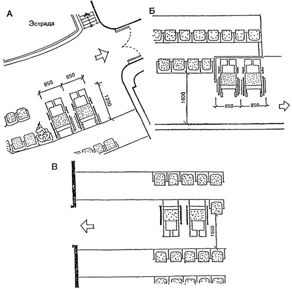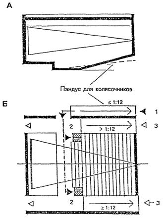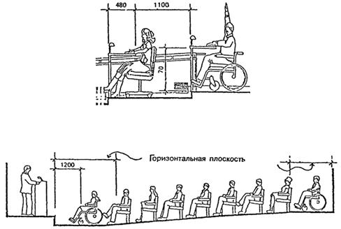 размещению зрительских мест для инвалидов с учетом габаритов кресел-колясок, условий видимости и особенностей эвакуации;