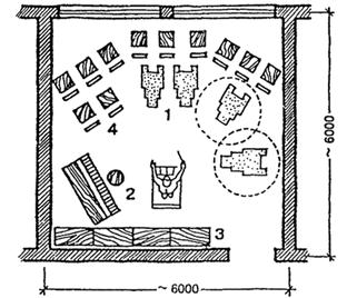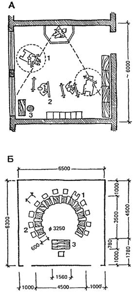 В кружковых помещениях рекомендуется выделять две зоны: для занятий 10 человек - площадью 40 м2 и для хранения материалов и инструментов - площадью 5 м2.