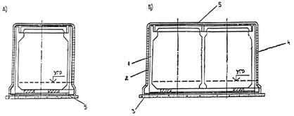 а - однопутного тоннеля; б - двухпутного тоннеля; 1 - сборная железобетонная обделка; 2 - гидроизоляция; 3 - бетонная подготовка или распределительная железобетонная плита; 4 - защитная стенка; 5 - защитный слой