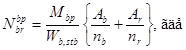 где zs1,s, zs2,s - расстояния от центра тяжести стальной части сечения до уровня расположения приборов для измерения деформаций на нижнем и верхнем поясах (εus1, εus2 принимают по абсолютной величине); Mbp - расчетный момент в том же сечении сталежелезобетонной балки от временных подвижных нагрузок, Es, Аs, Wb,stb, Ab, nb, Аr, nr - по СНиП 2.05.03-84.