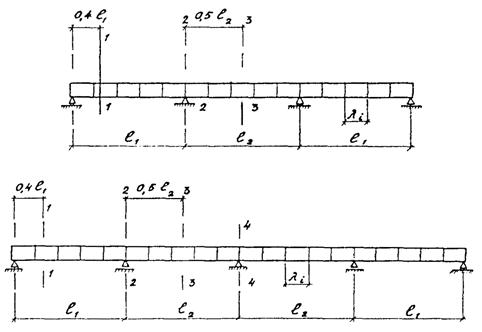 неразрезные пролетные строения с главными балками ступенчато-переменного сечения трех- и четырехпролетные с расчетными сечениями, указанными на рис. 2.