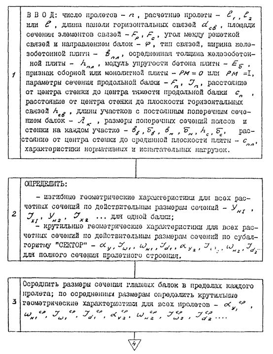 субалгоритма «СВЯЗИ» определения приведенной жесткости чистого кручения с учетом податливости связей и плиты проезжей части.