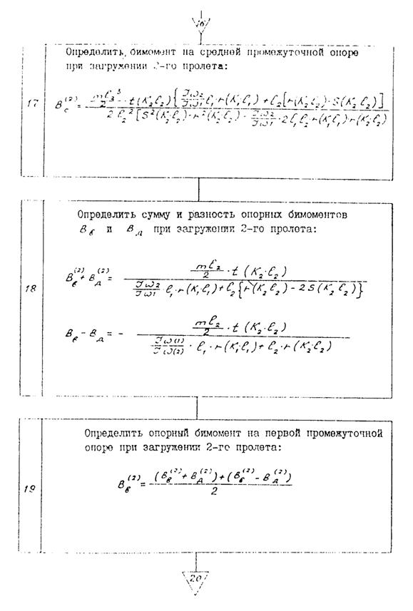 Субалгоритма «БИМОМЕНТ» определения бимоментов в расчетных сечениях неразрезного сталежелезобетонного двухбалочного пролетного строения с постоянным поперечным сечением в каждом пролете от равномерно распределенной крутильной нагрузки.