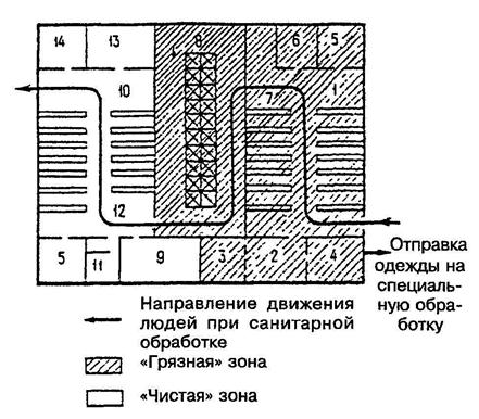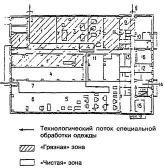 хранения загрязненной одежды; 5 - цех специальной обработки одежды;