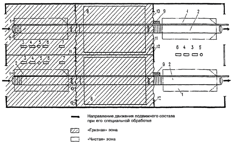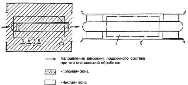 7 - установка для мойки двигателей снаружи; 8 - механизированная