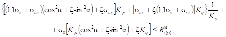 Kк - суммарный коэффициент концентрации напряжений на контуре выработки, определяемый по формулам: