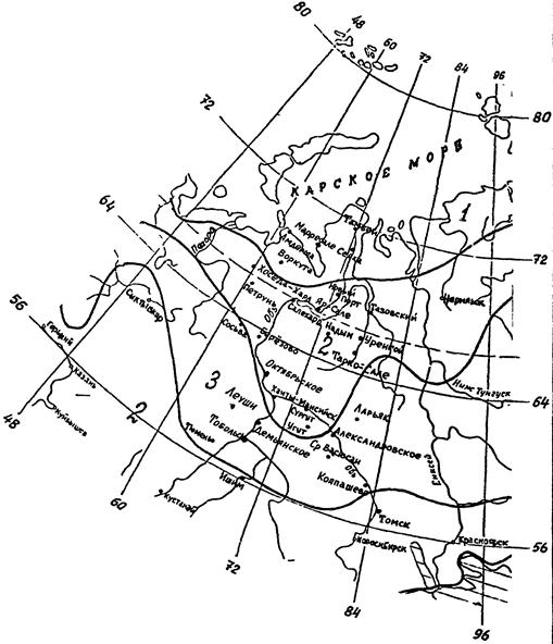 1.2.2. По природно-климатическим условиям территория Западно-Сибирского комплекса подразделяется на три зоны: Полярную, Приполярную и зону Среднеобъя.
