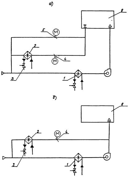 Рис. 8.1. Схемы систем вентиляции и кондиционирования воздуха с применением циркуляционных подмешивающих насосов.