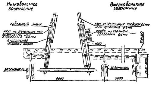 Расстояние между траншеями для этих кабелей должно быть не менее 3,0 м, а в стесненных условиях не менее 1 м.