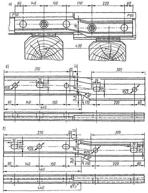 Главные пути на станциях, разъездах и обгонных пунктах следует укладывать рельсами типа, принятого для главных путей на перегонах, а приемо-отправочные пути - рельсами на один тип ниже укладываемых на главных путях, или старогодными рельсами того же типа.