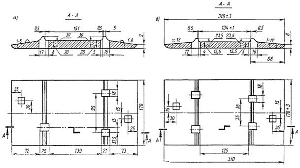 6.3. Величины прямых вставок, приведенные в табл. 1, относятся к симметричным стрелочным переводам марок 1/9 и 1/11.