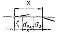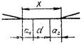 6.2. Величина прямой вставки d, мм, зависит от назначения путей, а также от скорости движении поездов по этим путям. Минимальные величины прямых вставок при укладке стрелочных переводов приведены в табл. 1 (а1 и а2 - расстояния от оси передних стыков рамных рельсов до центра перевода, м).
