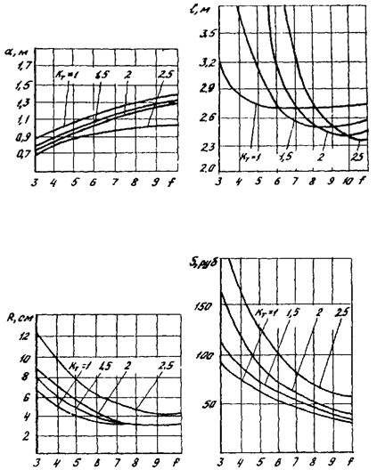 Выработка (пролет θ = 10,97 м, высота 7,77 м) заложена в грунте f = 5 ÷ 8, γ = 2,6 тс/см3, на глубине Hз = 200 м. Угол внутреннего трения φ = 0,785 рад, предельное напряжение растяжению грунта в куске σ = 400 тс/м2. Удельное сцепление анкерного стержня с цементным раствором τси = 450 тс/м2. Предельное напряжение сжатия Rспр = 115 кгс/см2.