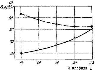 Из рассмотрения графиков зависимостей металлоемкости и себестоимости от номера двутавра преимущество гарантированного контакта очевидно. Металлоемкость же крепи в обоих случаях уменьшается. Таким образом, технико-экономический анализ указывает явное преимущество гарантированного контакта арки и грунта. При этом предпочтительны оказываются двутавры с небольшими номерами сечения (№ 14, 16).