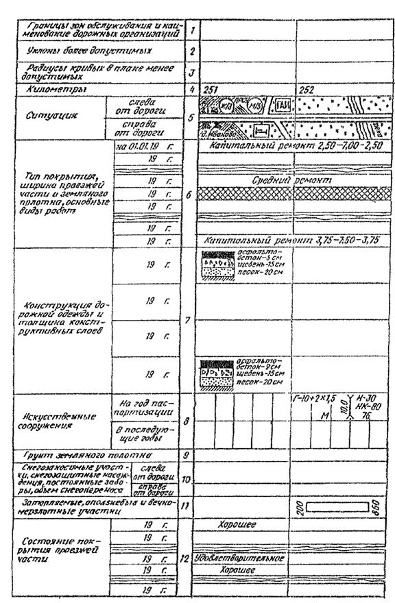 3.4. Дорожное управление на основании материалов, представленных дорожными организациями, составляет по каждой дороге паспорт и сводную ведомость дорог по форме Э-21, а также ведомости наличия и технического состояния зданий и сооружений по каждой дороге.