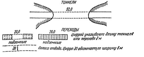 Ситуацию показывают на линейном графике условными обозначениями, указанными в приложении к нему и общепринятыми при топографической съемке.
