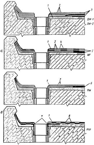 1.7. Гидроизоляция должна быть герметично сопряжена с бортиками балластных корыт, водоотводными и ограждающими устройствами, строповочными отверстиями, конструкциями деформационных швов, тротуарными блоками, карнизами, перилами, осветительными столбами и т.п.