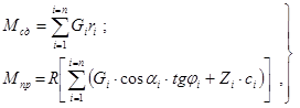 Проверяем устойчивость стены против опрокидывания (вокруг точки О - см. рис. 3, б)