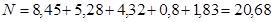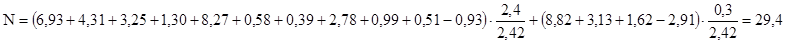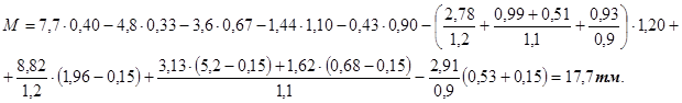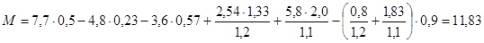 М = 6,83×0,40-4,31×0,33-3,25×0,67-1,30×1,10-0,39×0,90-(2,78+0,99+0,51+0,93) ×1,20+8,82×(1,96-0,15)+