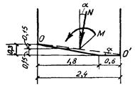 Определяем внутренние силы (продольную силу N и изгибающий момент М) в сечении по подошве фундамента (см. рис. 4);