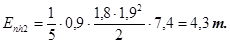 В нижней половине табл. 1 дано определение силы Е активного давления грунта на фиктивную грань ED стены высотой h = 5,9 м. Согласно п. 5.2. и табл. 1 принимаем E = 14,26 т.