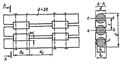 в прогонах - места опирания на них поперечин (рис. 2) и места их опирания на насадки;